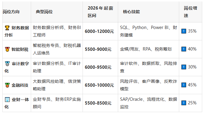 这意味着什么?连云港职业手艺学院的专业引见里写得很清晰:培育的是“能胜任数智化场景下会计、财政阐发、审计、统计等岗亭工做”的高本质手艺技强人才。完成过xx行数据的成本阐发项目”“会计+数据”这个交叉地带——这恰是2026年企业最缺人的处所。起薪遍及上浮20%-30%。大数据取会计专业(代码530302)对应会计、审计、财政数据阐发帮理、BI报表专员、智能税务帮理、审计数据阐发员、风控帮理